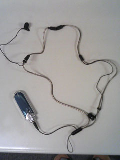 ダイナミック型 インナーイヤーヘッドホン ATH-CK53NS 要はネックストラップ付きイヤホン。主に外を歩く際に使用(だと思う) 自前のMP3プレーヤーを付けて対比を出してみました。 コードが妙にフニャフニャなのは、ケースから出したばかりだからw これの凄いところは、イヤホンをストラップにホールドできるようになっている作り。 (他の製品でもあるんだろうけど、調べてらんない(´・ω・`; 片方の耳でしかイヤホンを使わない状態であっても、もう片方が無駄にプラプラしないのはナイス。 まさに外歩き用。 耳に固定できるような作りではないので、ジョギングなんかには向かないけど。 ストラップもあるので、そういったMP3プレーヤーやケータイを使う場合にも便利そう。 でも、ケータイを首から下げるのって結構重いんだよね……。