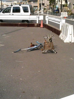 まったりとすごしながらも、まったりすぎていくつか忘れ物もあったりした一日でした。 普段は歩かない方面の町の一角。 新規に道路を作るべく、日夜頑張っているようです。 どこまで繋ぐのかわからないけれど、まだまだ先は長そうですよ。 用地買収とかも含めると随分と前からやっていたみたいだし。 そんな中にある謎のオブジェ。 細くて分かり難いけれど、元は二台のママチャリだったように見えます。(つーか、まんまやw 単なる粗大ゴミに見えるものの、手つかずに放置してあるって事はやはりオブジェなのだろうか。謎。 出番待ちの歩行者用信号機と普通に稼働中の車両用信号機。 うむ、カバーが取り去られるのはいつの事か。 場所は移って駅前。 目下のところ工事中のとある店舗。 少し前までは写真の現像受付とケータイ売場だったのだが、売上げが悪かったのかなぁ。 もちろん、ワシは一度も利用してません(´・ω・`; さてさて、駅前という事で食べ物屋になれば少しは客足も増えようかと期待するのですが、 問題は営業時間か……。 終電まで営業していれば、間違いなく帰宅時に利用します(≧∇≦)ノシ まぁ、駅前とはいえ、繁華街というような賑やかさは無いので営業時間もあまり期待はできませんがね。