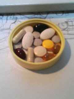 そもそもの始まりは頭皮を気にするところから。 とある健康番組で (あるあるだったかも……。もう記憶薄) 、亜鉛とビタミンBが良い、なんて事を聞いたので飲み始めるように。 (ぼーっとテレビを見ていたので、本当に亜鉛とビタミンBだったのか自信がない……) で、薬局などでサプリのコーナーで色々なパッケージにある効果を見ているうちに 『自分に足りてないなぁ』 と、あれもこれもと買うようになってしまい、今では 亜鉛 ビタミンB群 マルチビタミン ビタミンC ビタミンE 鉄 マルチミネラル ブルーベリー を飲むように。 はたして、効果があるのかどうか。 飲まずにいた場合の現在の体調と比べる事が出来ないので、なんともはや。 でもまぁ、ちゃんと効いていると信じたい。 ちなむと、一回に飲んでいる量はこんなカンジ。 多いのか少ないのか、なんとも微妙。 ちなむと、風呂上り(or 就寝前)に飲んでます。なんとなく。 |