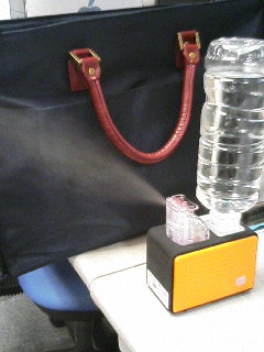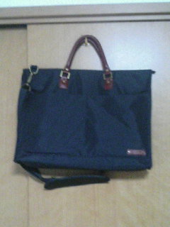 デイバッグ。 中に入れているのは、タオル2枚、電子辞書、保険証やら診察券やら絆創膏やら入ったポーチ、折畳傘、mp3プレーヤー、財布、読みかけの小説。 正直、それだけだとスカスカです。 そりゃあ、仕事帰りに買い物に寄るとか、そういう時には便利なのですが、トータルで見るとどうにもバッグ自体が荷物に……。 仕方ないので、買い替えを敢行。 平たく言えばトートバッグ。デイバッグなんかと比べると薄っぺた。 まぁ、上記の荷物程度ならこんなもので十分かと。 本来はノートパソコン用らしいのですが、まぁ、別にいいやw しかし、これを選ぶのにバッグ売り場を三往復ほど……。 機能的には他にも色々とあったから、なかなかコレと決められなくてねぇ……(@@;