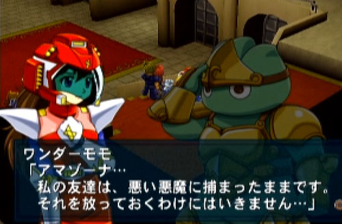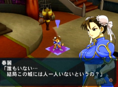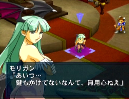 ナムコクロスカプコン 第8話 「VAMPIRE」 ちなむと、6、7話では異世界に迷い込んだ主人公達が元の世界に戻る方法を聞きに大巫女のもとへと。 プロローグなんかで出てきた面々と合流したりなんだりで。 大巫女の言葉に従い、魔界着。そして選択肢登場。二手に分かれての探索となるのですが。 主人公ユニットがどっちへ行くかを決めるのかと思いきや、主人公も含めて二手に分かれるメンバーは固定ぽいです。プレイヤーがどちらを追うかの選択肢ってとこなのかなぁ? 選んだ先では一人はぐれていた春麗がデミトリの城内をうろついていて。 モリガンと遭遇。その後、敵が現れたり。二手に分かれたチームが登場したり。デミトリも登場したり。 主人公達は当然、元の世界に戻る方法を探しているのですが、ここでモモが決意表明(?) とはいえ、それを遂行するにも元の世界に戻るにしろ、やるべき事は盛り沢山。 まだまだ魔界行脚は続く~!!