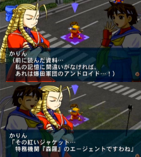 そういや、今日はコミケ最終日だったんだよなぁ……。もう数年行ってないですな。 暑かったり寒かったり、まぁ、早い話が行列嫌だ、と。 そんなこんなでゲーム三昧の自宅。エアコンなし。扇風機あり。汗だくだく( ̄д ̄; ナムコクロスカプコン 第一話 プロローグが終わっても全キャラ・作品が揃ったワケでもなく。 まずは 「ヴァンパイア」 「鉄拳」 より フェリシア、キング のネコ科コンビ。 キング曰く、「これはマスクだ」が良い味出ているかとw 惜しむらくはキングが声なし(?)なので、戦闘前・後のカットイン時に出番がない事か。 「ワンダーモモ」 「超絶倫人ベラボーマン」 より ワンダーモモ、ベラボーマン ペア。 奇抜な姿のわりにまとも&正義漢っぷりな言動のベラボーマンがとてもカッコイイw 完全な巻き込まれ型となったモモの保護者的(?)存在のような感じも含めて今後の活躍に期待(^^ そして 「ストリートファイター」 から 春日野さくら、神月かりん 格闘じょしこーせーコンビ。 熱血バカと冷静お嬢様のナイスコンビ。 そして、日頃から情報収集に余念のないお嬢様。 きっと、今後も 「あれは……!」 を連発してくれるに違いないw