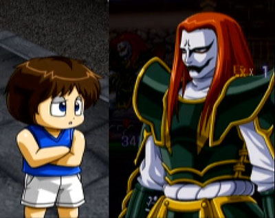 まぁ、友人同士でパーティ組むとなると23時を回ることもザラなので、 それまではレベルの高いところでガシガシやろうかという算段なのですが。 なぜだか、PSUは緊急メンテに入っていまして。 終了予定時刻は25時だとか。ナメとんのかw 仕方ないので、ナムコクロスカプコンなぞ……。 プロローグ3 「ソウルキャリバー」より参戦 御剣平四郎、タキ 「バラデューク」より トビ・マスヨ 「バーニングフォース」より 天現寺ひろみ 本作では二人は先輩後輩という事らしい。 会話から判断する限りでは、突撃先輩とそれに振り回される後輩といった感じ。 なにやら物騒な事ばかり言うマスヨ先輩なのでした。 ちなむと、二人一組の遠距離タイプユニット。混戦になったらどうしようw 「ロックマンダッシュ」より トロン・ボーン ……ごめん。ロックマンシリーズは一度もやった事ないわ(^^; でもまぁ、お金を探すスキルは重宝しそうだw そして「妖怪道中記」より たろすけ 「源平討魔伝」より 景清 ストーリー上では接点のある二人だが、おそらくは本作随一の異色コンビユニットではないかとw まだまだプロローグは続くのだ~★(@w@;