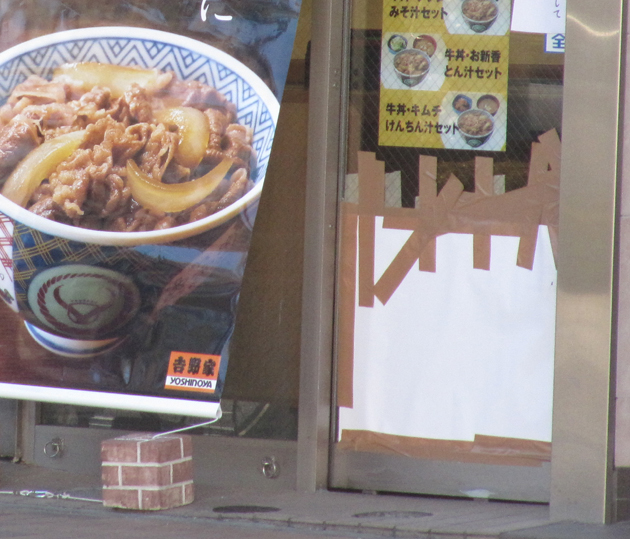 なかなか痛々しい事になっている。 昨夜、時間にすると2330時を少し回ったくらいだろうか、帰宅時に店の前を通りかかった折、二人の店員が外に出ていたのが見えた。 『あ、いいですいいです。大丈夫ですから、触らないでください!』 なにやら大きな声でガラスドア越しに叫ぶ店員さん。(うろ覚え) 釣られるように見てみると、ガラスにはクモの巣状の大きなヒビが。 中に居た男性客が破片拾いを手伝おうとしたのを見た店員さんの声だった……ようだ。 さて、その客の不注意でガラスを割ってしまったか、それとも(時間帯的に)備品搬入の際にカゴの角でもぶつけてしまったか。 もう5分くらい早く通り掛かれば、決定的瞬間を見る事が出来たのかもしれない。 まぁ、なんというか……ガラス、高そうだなぁ (´・ω・`;