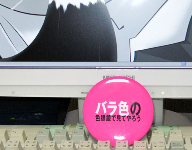 ダブルクォーターパウンダーチーズセット。(長い呼称だな……) たまに食べると美味しいんだけど、ジャンクフード感全開&高価格はなんとかならんもんかと。 まぁ、月にそう何度も食べるものでもないので、ラーメンと同列的な感覚ですかね。 で、現在はクォーターパウンダーのプッシュ期間なのか、セットで貰えるバラ色カンバッヂ。 ちなむと、Tシャツスクラッチカードはハズレでした。 ……。 まぁ、背後の制作中のCGを見られたりした日にゃ、バラ色どころかピンク色の色眼鏡で見られてしまう事請け合いですよw でも、今日は遅番週明けだったので、夕方からぐっすりお昼寝で。 あまりCG作業は進まなかったなぁ……(´・ω・`; 今週の遅番は、朝帰りが一日だけで済んだものの、その一回によって身体に発生する疲労のなんと濃い事か。寄る年波ってものを実感しますYO!(>w<; |