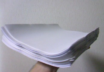 まぁ、明日からはコミケ物販の通販チェックかな! どっちにしろ、無駄な買い物はしてしまうだろうなって事で!(えー ちなむと、今現在、外では雨が。少し昼寝していて気付かなかったけれど、夕方前から降っていたのかな。 そもそも昨日の夕方からして物凄い雨が降ってたし。 昨日も今日も、終了時間ギリギリまでコミケ会場に居た人は散々な目に遭ったのではなかろうか。 合掌。 それはそれとして。 今日は某賞応募作の小説の第一稿の出力をやってみたり。 手にした紙の束はA4サイズで290枚。400字詰め原稿用紙に換算すると579頁。 そんなに重くはないけど、かさばるなぁ……。 レーザープリンタなので出力サクサクなのはいいのだけれど、 あまり大きくはないプリンタなので、用紙補充をマメにしないといけないのがめんどくさい。 安い紙を使っているせいなのか、それともレーザープリンタの特性なのか、 紙の左右が反ってしまってこれもまた嵩張り感を助長しています。 問題は、これをチェックしてもらう人の順番……。 基本的に妹と友人二人にお願いするのですが、妹はコミケの戦利品でしばらく忙しそうだしなぁ……。 チェック要員としては妹は重要な戦力だし、コミケ戦果を心ゆくまで堪能してもらった方が良いのだろうか。 友人に先に見てもらうのだとしても、受け渡しは日曜になっちゃうし。 後で妹と相談だだだ (@@; より高い完成度を目指すのならば、何度でも読み返すと良いのだけれど、そうなるといつまで経っても完成しないし、友人らに見てもらって誤字脱字その他いろいろおかしい部分を調整したら完成ですかね。 これでやっとビデオと積んでいるエロゲの消化に入れる……。ふぅ。 三日間の夏休みもいつ取るか決めてないし、世間様の夏休みから外した時期にでも温泉旅行にでも行きたいなぁ。 |